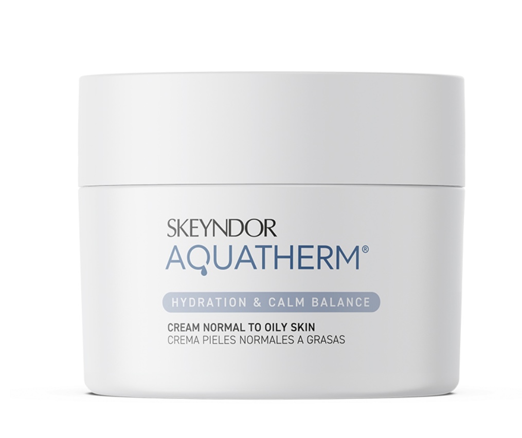 The Skeyndor Aquatherm cream for combination skin, specifically the "Cream Normal to Oily Skin," provides deep, long-lasting hydration, strengthens the skin's natural barrier function, and rebalances the skin's protective layers. It contains Natural Moisturising Factor (NMF) to restore internal water reserves and prebiotic oligosaccharides to stimulate the skin's natural microbiota. This results in normalized, less sensitive skin that is better equipped to handle external aggressions