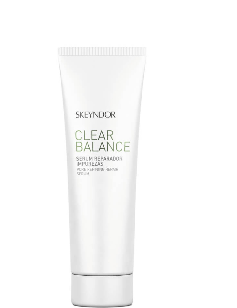 The Skeyndor Clear Balance Pore Refining Repair Serum for oily, acne-prone skin offers several benefits, including reducing the appearance of large pores, softening blemishes and micro-scars, and improving the skin's repair processes. It uses active ingredients like Bakuchiol and Liposome Ursolic Acid to provide a retinol-like effect without the irritation and helps to calm and regenerate the skin. The serum is oil-free and designed to normalize skin repair, promote healing, and contribute to a smoother, clearer complexion.